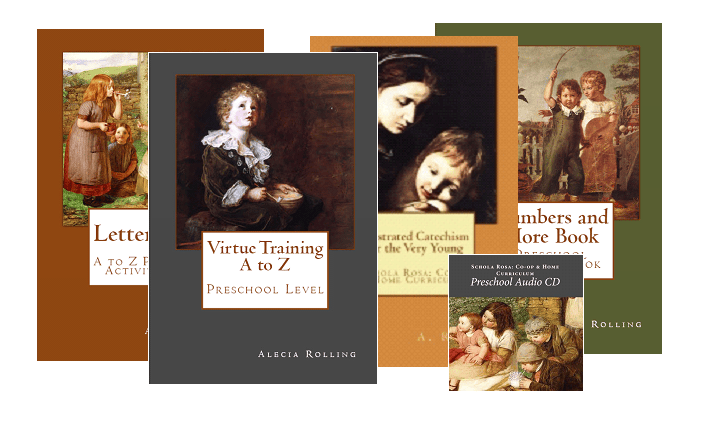This set includes all of the printed preschool materials available from Oxrose Press. All of these books and audio files are found in digital form in the Schola Rosa Preschool Curriculum.