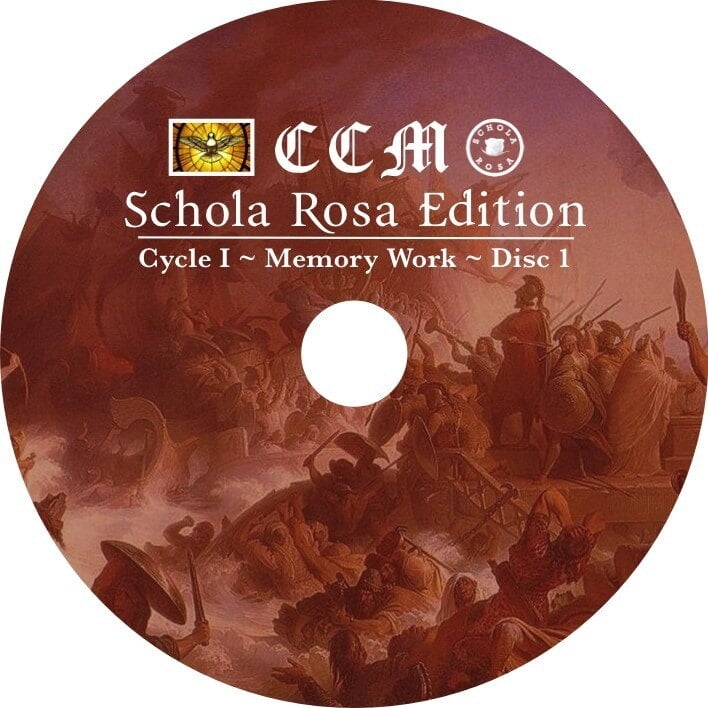 A set of three (3) audio CDs containing all of the CCM: Schola Rosa Edition memory work for Cycle I, broken down by week and by subject.